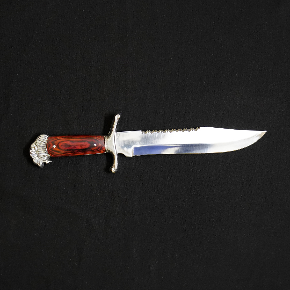 Pattern-Welded Blade: Features a hand-forged Damascus steel blade with a distinctive rippled aesthetic.