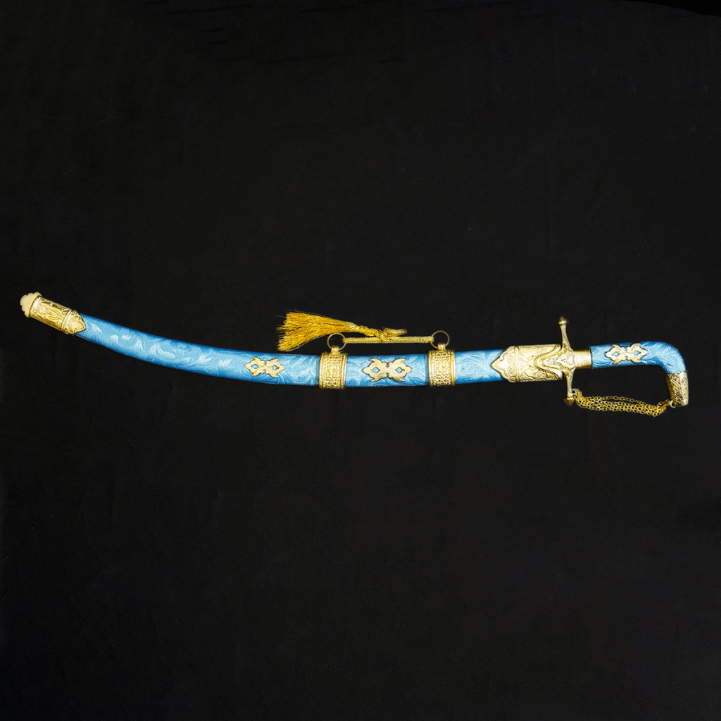 Luxury Gold Fittings: Enhanced with prominent gold-colored tsuba (guard) and pommel, adding a touch of prestige and elegance.