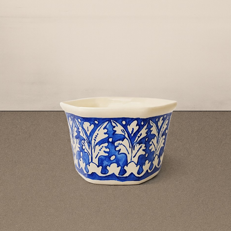 Authentic Craftsmanship: Features detailed hand-painted floral and vine motifs in the traditional deep Indigo Blue Pottery style.