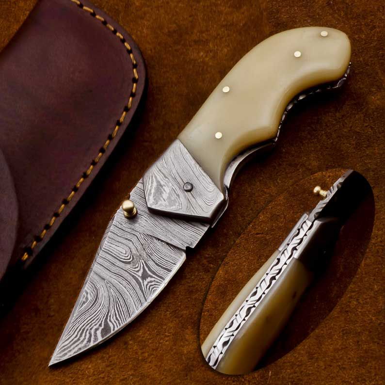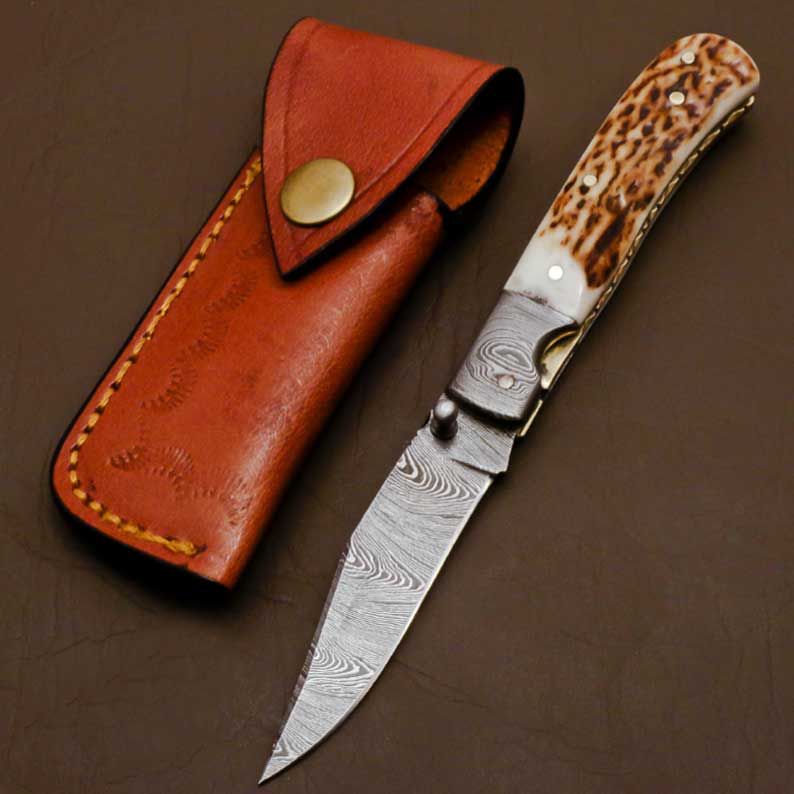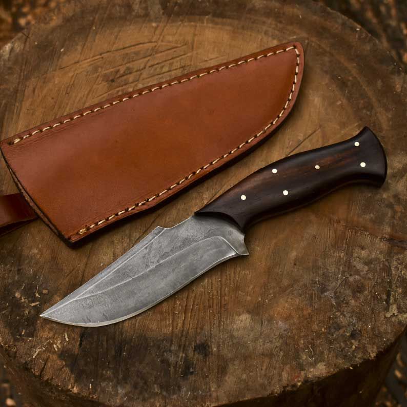 • Handle Material: The main handle scales appear to be made of a dark, finely figured wood .