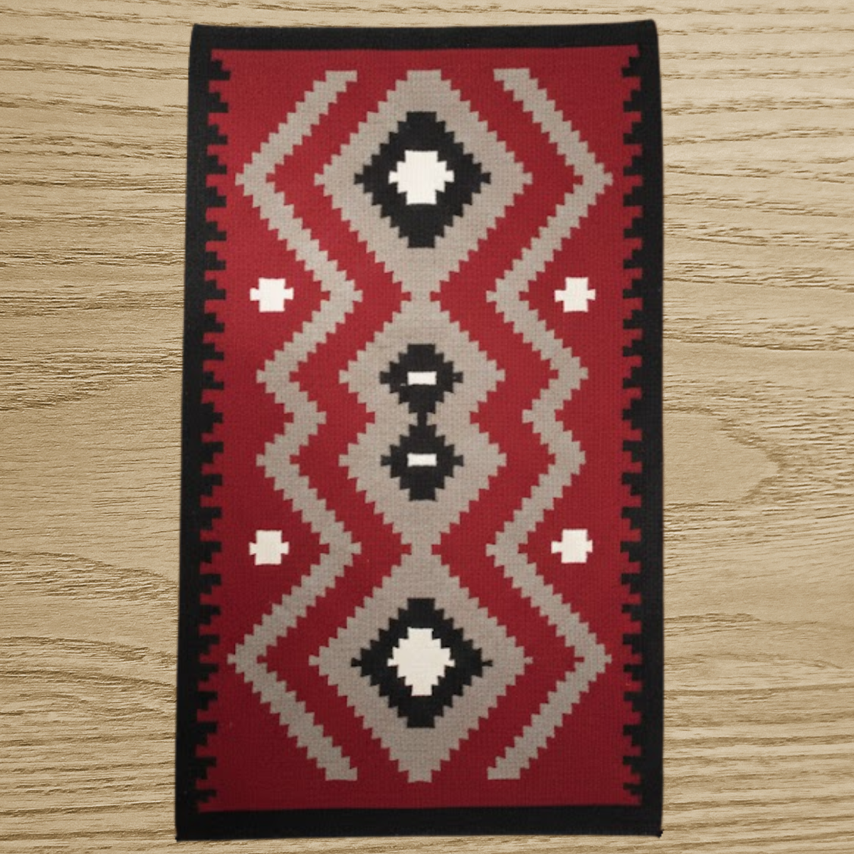 Detailing: Decorated with small, repetitive geometric cross and dash motifs.
