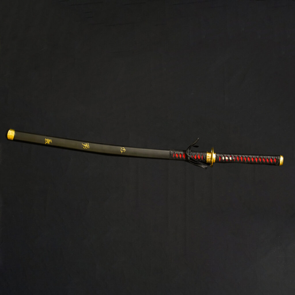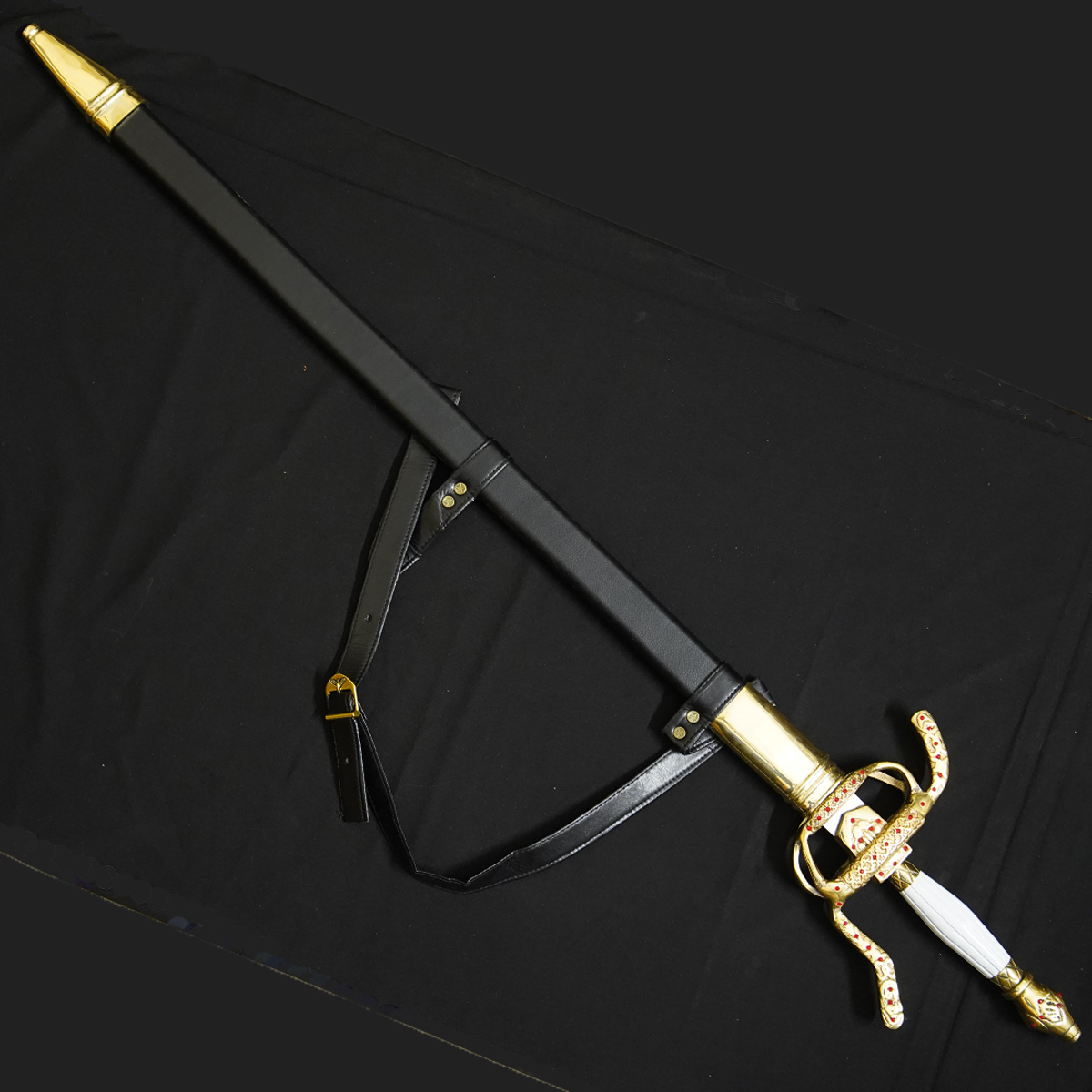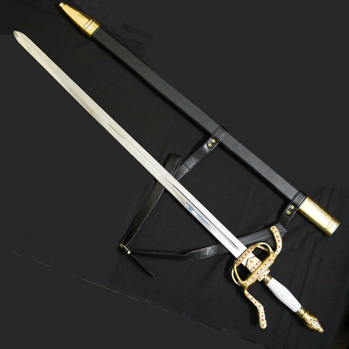 Integrated Harness/Belt: The scabbard is fitted with a matching brown leather carrying strap/belt, making it ready for display or costuming.