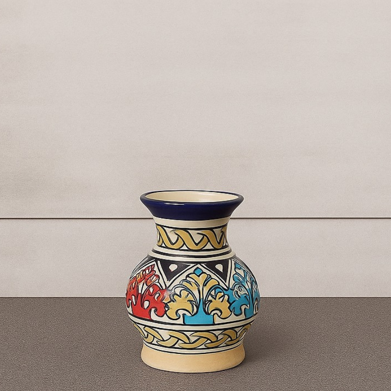 • Design Motifs: The body is decorated with distinct, layered patterns: