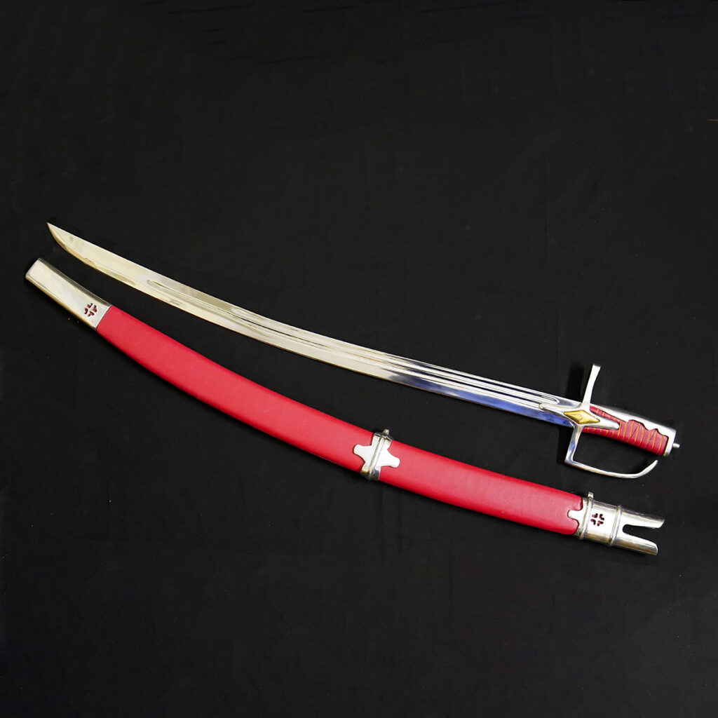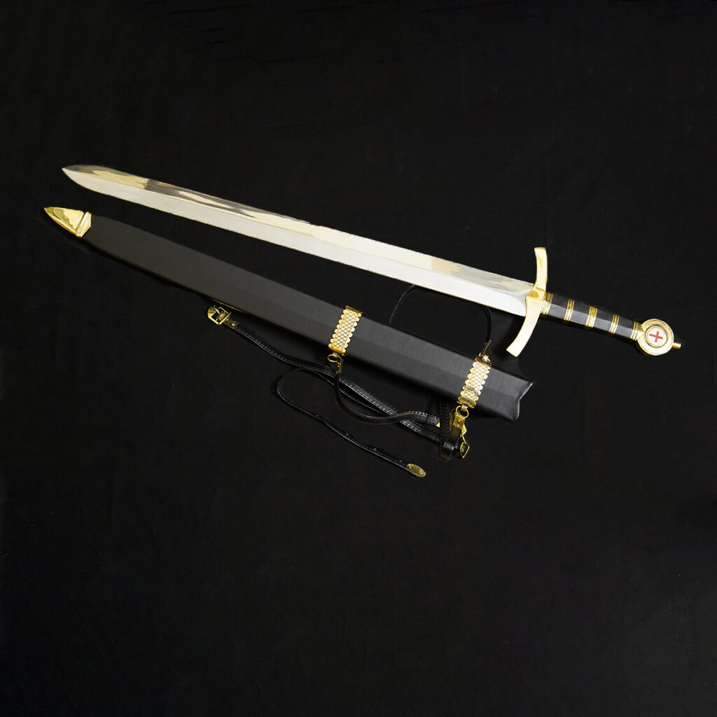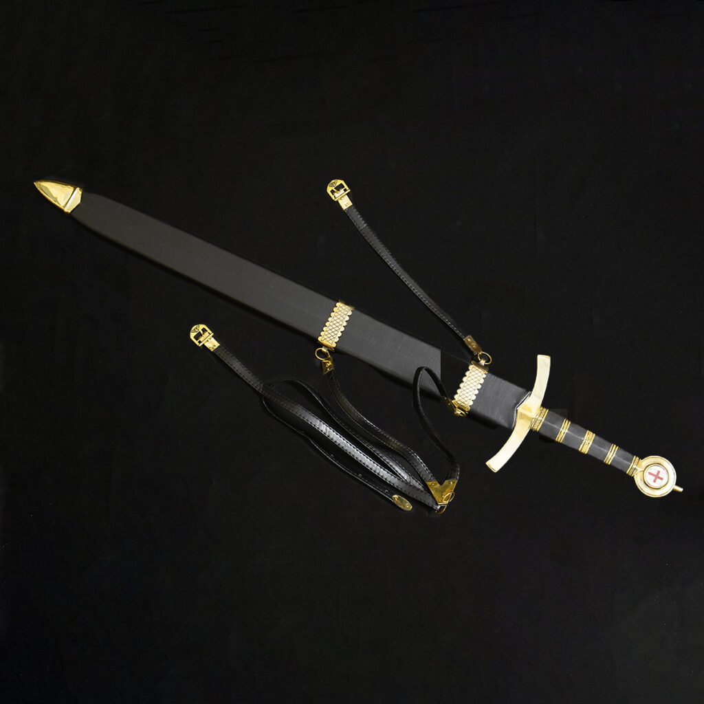 Carry System: Includes an integrated leather suspension bridge with multiple wrap-around straps, designed to hang the sword securely from a belt.