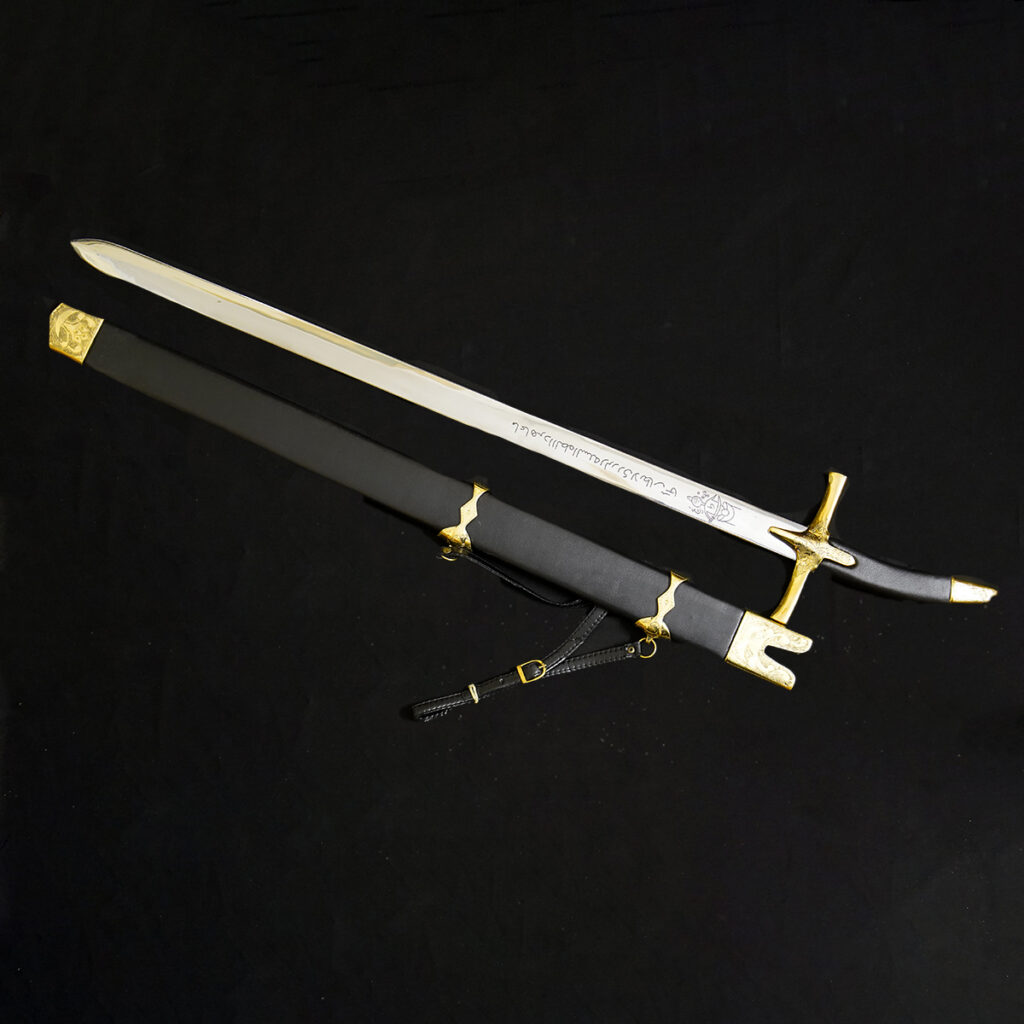 Ornate Hilt & Scabbard: Features a simple, yet elegant gold tsuba (guard) and matching gold fittings on the handle and scabbard.